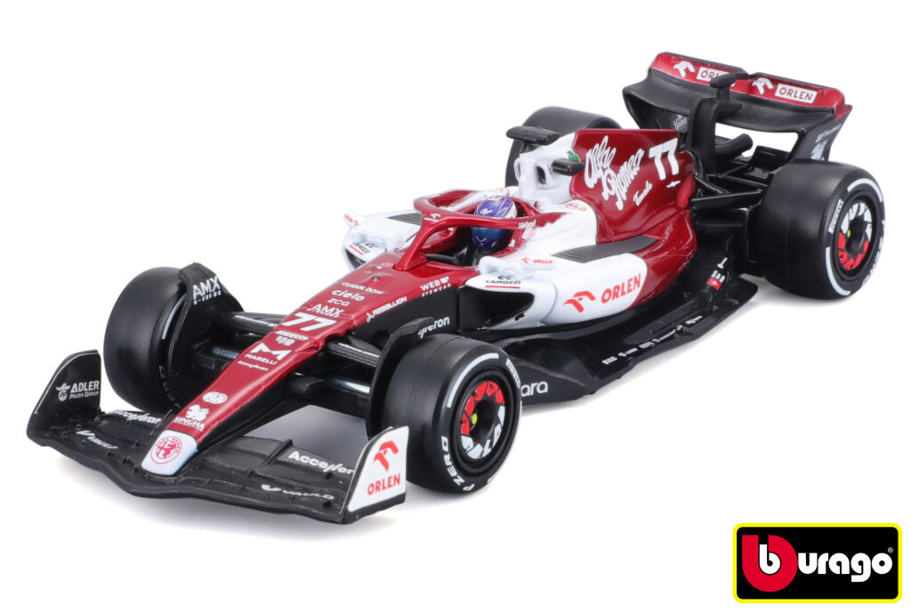 Kovový model ze serie Bburago 1:43 Formula F1 Alfa Romeo Orlen C42 (2022) nr.77 Valtteri Botas - with driver