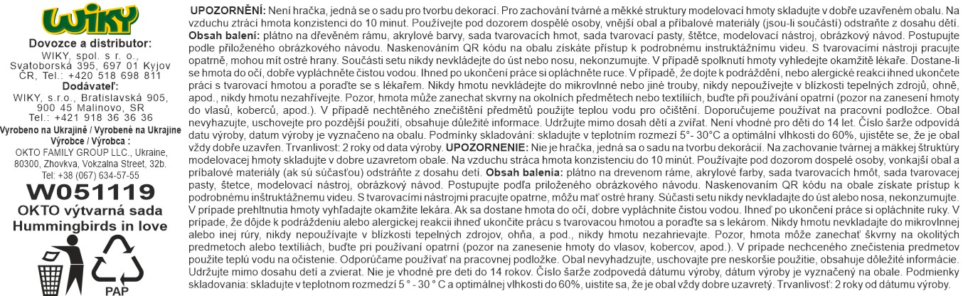 OKTO Malba a 3D modelování obraz ""Zamilovaní kolibříci"" 30x40 cm. Obsah balení - plátno, obrázkový návod, modelovací ...