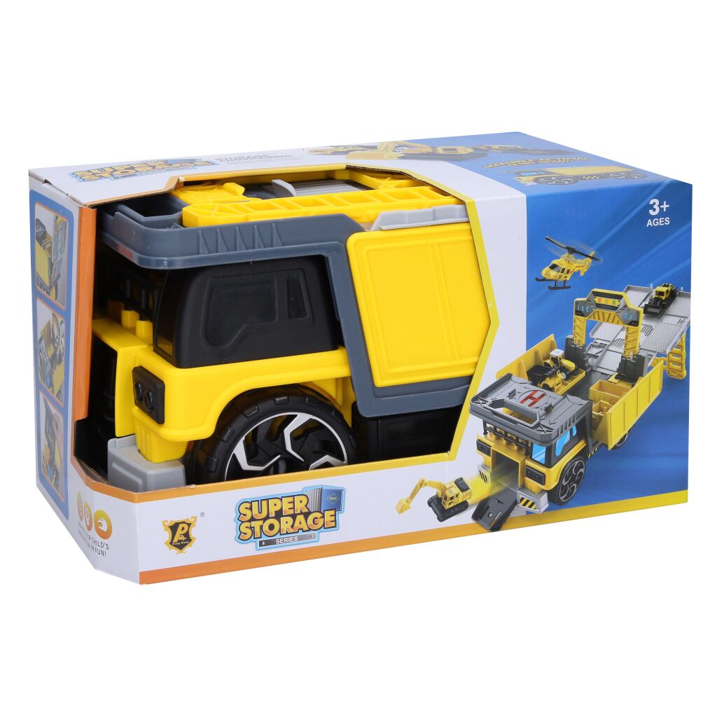 Stavební stanice set. Rozměry 25x15x14,5 cm. Obsahuje sklápěč stanici s volnými koly, 1 malé stavební auto (bagr), polepy. Používejte dle obrázků na obalu.