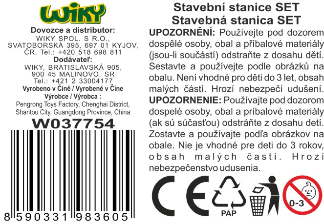 Obsahuje sklápěč stanici s volnými koly, 1 malé stavební auto (bagr), polepy. Používejte dle obrázků na obalu.